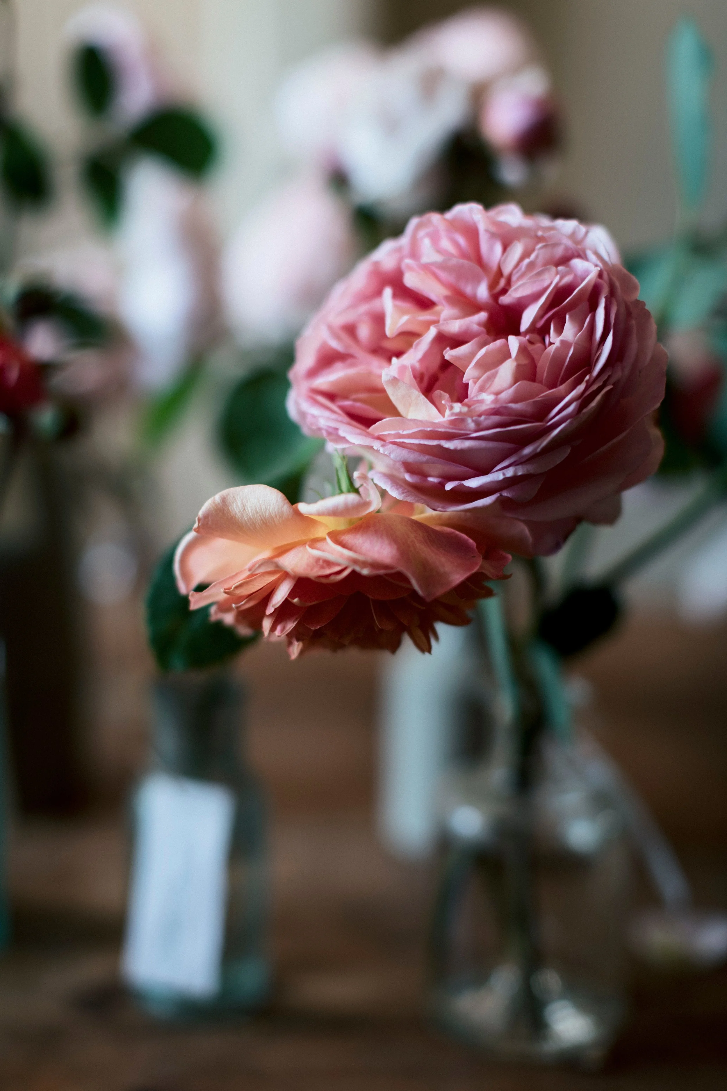 One of the first things I did as a novice flower farmer was to plant a trench full of David Austin roses. About thirty of them. I researched which varieties to choose endlessly although my choices had absolutely nothing to do with being practical for cutting. I just chose the ones that looked the most romantic and the most like David Austins - cupped and quartered, ruffled and rippled. And I have adored every single one since. Except Queen of Sweden, it was too straight-stemmed and too perfect and too pink. I gave that one away.