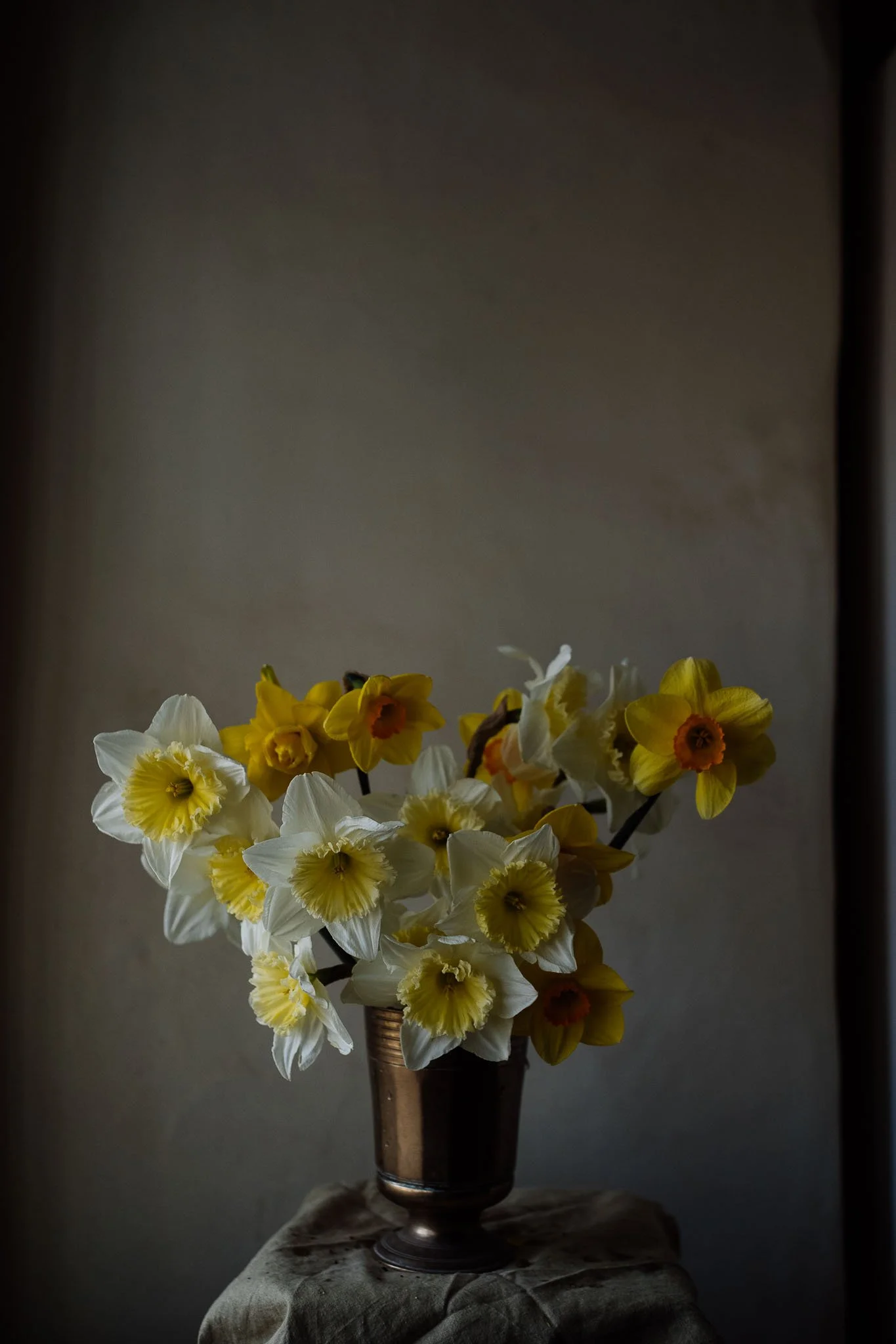 My village is famous for its daffodil drifts and no, I still don’t like the common yellows (few of my instagram posts have been quite so contentious), the paler form of Narcissus pseudonarcissus is adored, as much for its name as anything else. I don’t think that is what is slowly creeping across the orchard. The bulbs planted around the fruit trees were meant to be a mix of heady doubles in tones of gold and cream. They aren’t. But I have done my best with them, so here they are.