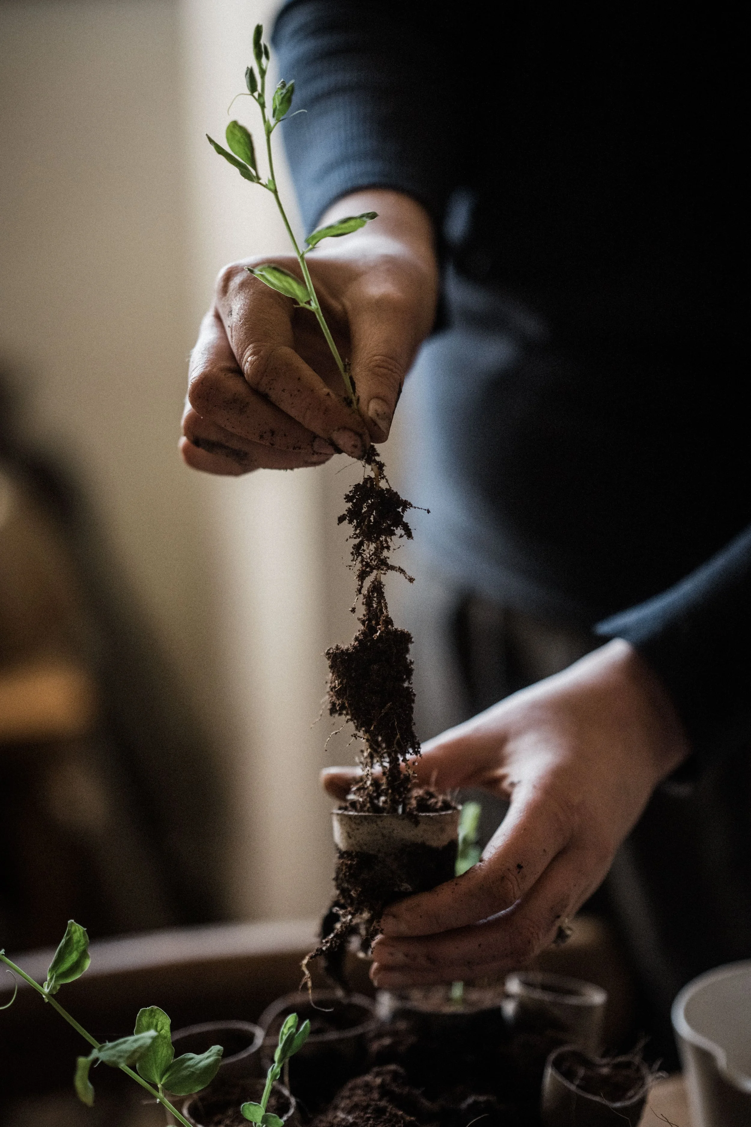 Fill your pots with good quality compost. Sweet peas produce tap roots, so they do need a bit of depth underneath them. This is why cardboard tubes or root trainers are better than small pots, but the deeper 9cm pots can be used if that is what you have.
